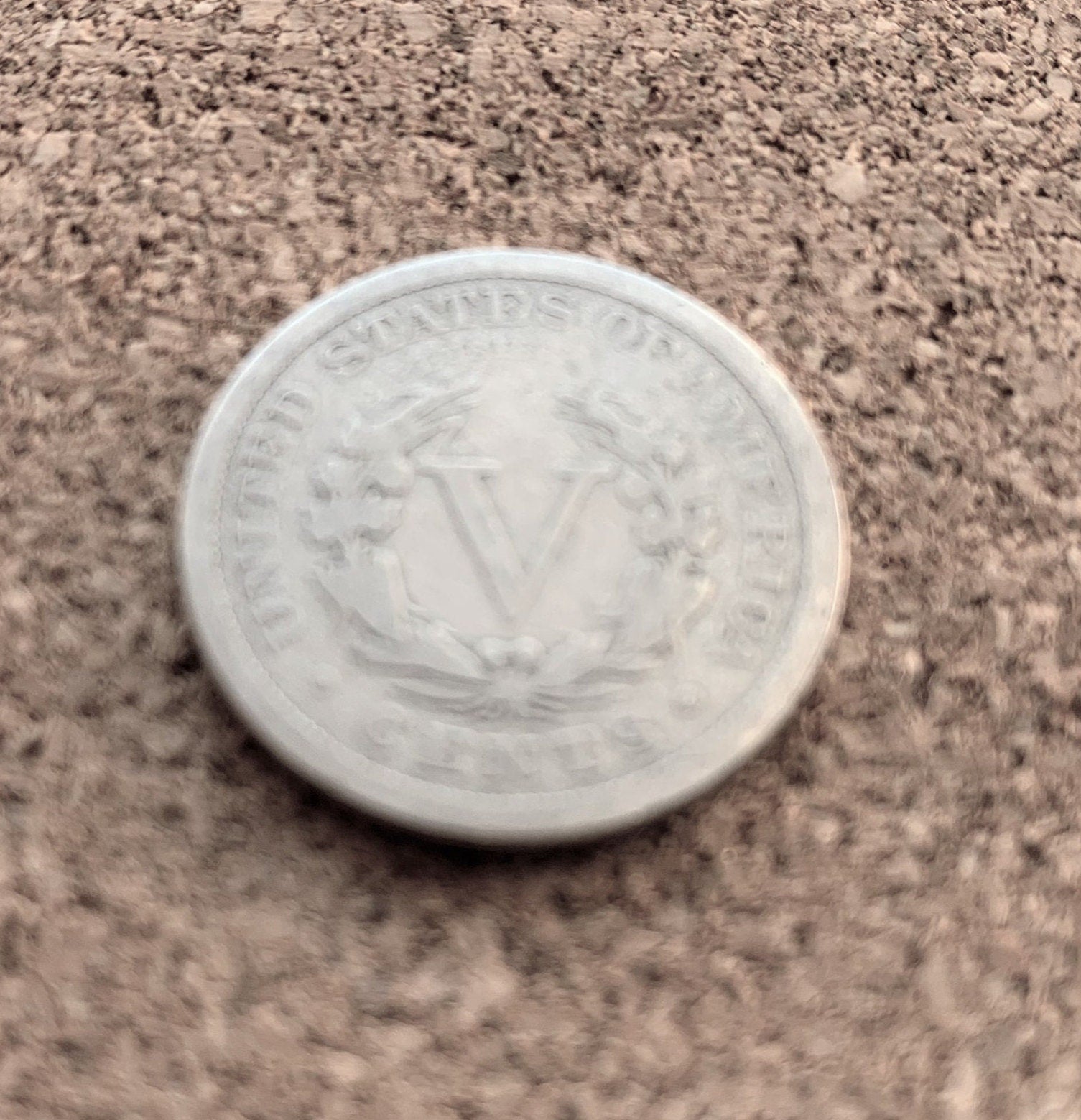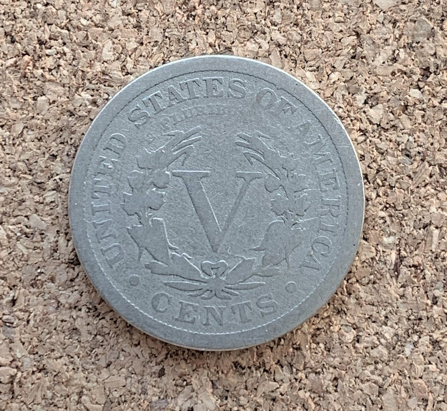 The Liberty Head nickel, sometimes referred to as the V nickel because of its reverse (or tails) design, is an American five-cent piece. It was struck for circulation from 1883 until 1912, with at least five pieces being surreptitiously struck dated 1913. The obverse features a left-facing image of the goddess of Liberty. The reverse of the coin was represented by a large “V,” the Roman numeral for five (thus the other popular name, the V Nickel).