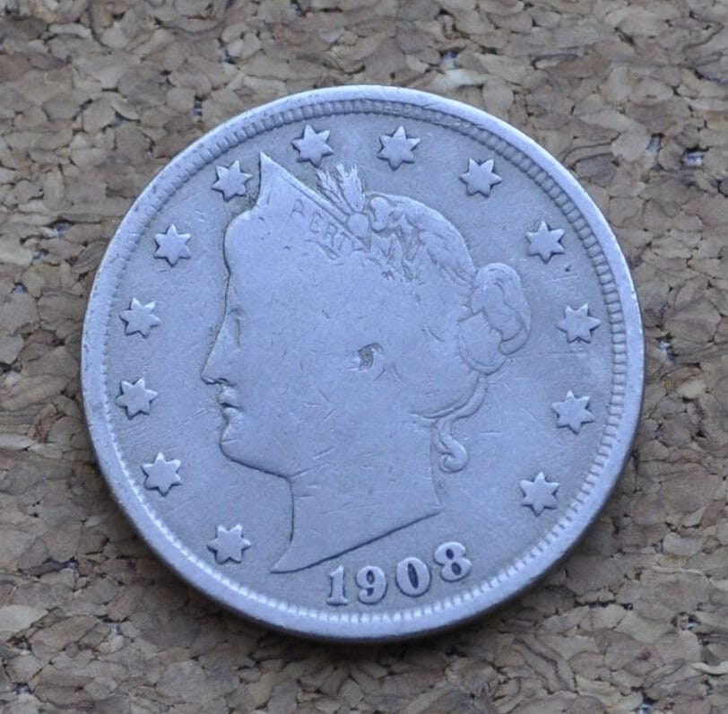 1908 Liberty Head Nickel - V Nickel - VG (Very Good) Grade / Condition - Liberty Nickel - 1908 V Nickel - 1908 Nickel