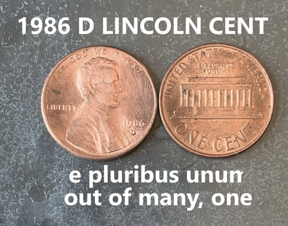 1986 D Lincoln Memorial Penny Cent - Fantastic Condition - 36th Anniversary - Collectible Coin