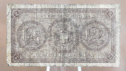 This listing is for the photographed 2 Lire Italian Banknote. 1914 Issue. Great piece of history and an excellent addition to any collection.