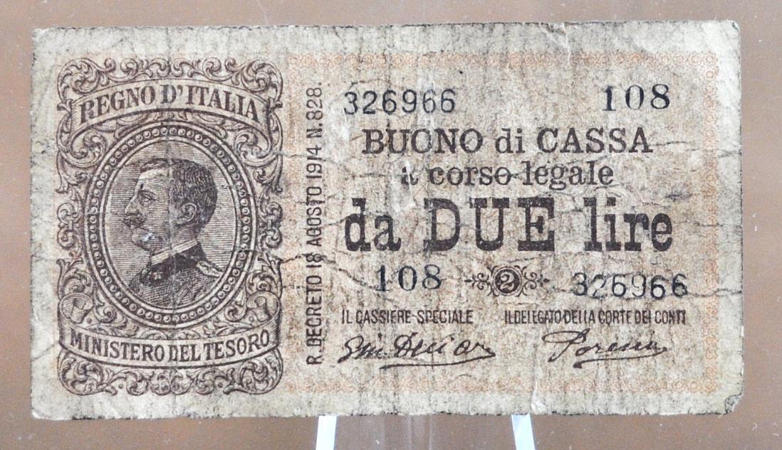 1914 Italy 2 Lire Banknote - Italy Two Lire Due Lire Paper Money 1914, Cool Old Banknote from Italy, Pick #37c