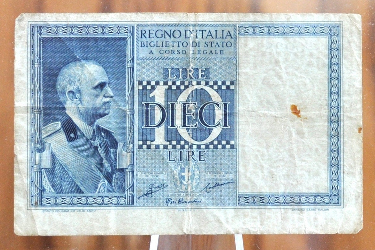 1935-39 10 Lire Italian Banknote - Italy Ten Lire Dieci Lire Banknote 1935 King Vittorio Emanuele III, Cool Old Banknote from WWII
