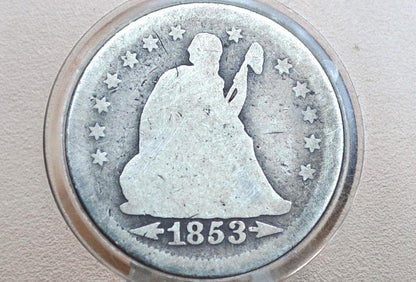 1853 Seated Liberty Quarter, Good, 1853 Silver Quarter 1853 Liberty Seated Quarter; Historic Coin Type, Great Collection Addition