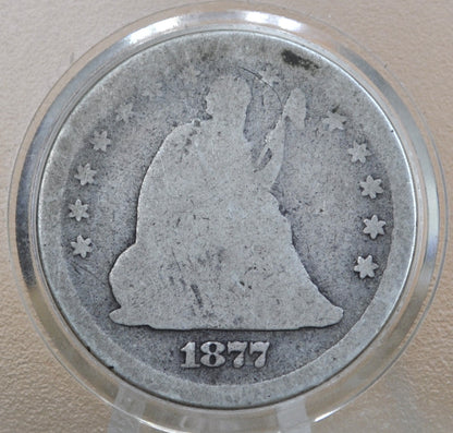 This listing is for one 1877-S Seated Liberty Quarter, as pictured. AG (About Good) Grade / Condition.